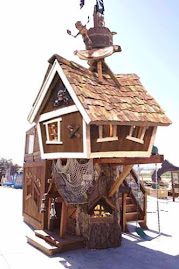 The ladder in the center of the huge, hollowed out log provides access to the trap door in the floor of the crooked clubhouse. We offer several designs and a list of options that give you a multitude of possibilities (or we can work with you to design and build a custom creation). Options include exterior stairs, balconies, spiral slides, bridges, cargo net railing, talk tubes, swings, monkey bars, bear carvings and more. We can also install electricity if you want. We’re ready to work for you now! Give us a call and we’ll take it from there.